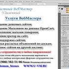 Услуги удаленного ВебМастер: Создание дешевых сайтов, Создание магазинов на движке OpenCart, Наполнение магазинов товарами с обработкой фото, Техподдержка сайта, Перенос сайта на другой хостинг, Ведение рекламной кампании в Яндекс. Директ, и др. Звоните, пишите. ...